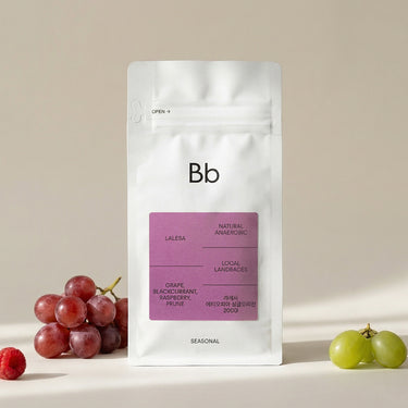 Interestingly, this anaerobic, naturally fermented Ethiopian coffee reveals both red and green grape notes in one cup. The first sip reveals the vibrant purple fruitiness of red grapes, followed by a vibrant greenish touch of green grapes. As you sip, the aromas of red raspberries and strawberries intensify, reminiscent of a grape and strawberry juice.